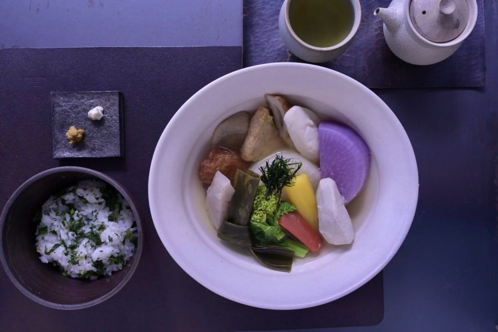 三浦産の野菜と静岡の練り物をふんだんに盛り込んだ彩りよいおでんです。